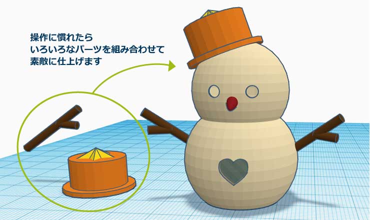 今回は子たちが講習で使う無料の3DソフトTinkercad(ティンカーキャド)で雪だるまキャンドルを作ってみます。